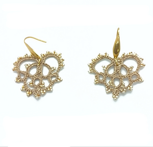 Boucles d'oreilles faites en dentelle à la navette et petites perles en verre japonais. Elles vous apporteront une touche romantique et raffinée. Jamais trop amoureuse de la vie!